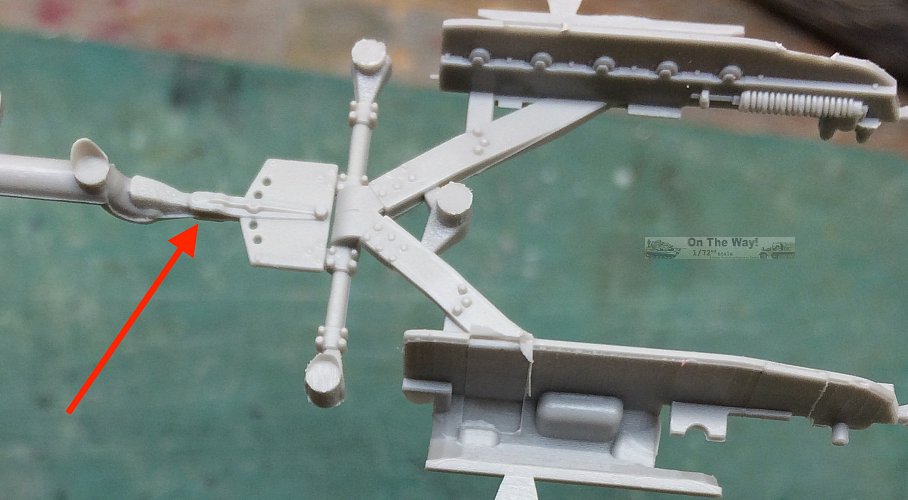 The rear towing bar is accurately molded but some careful cleanup of the pull bar will be required (see the red arrow above). A diagram of this area and tow bar