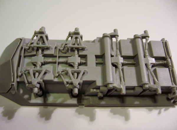 Some test fitting and trimming may be needed here. The front wheels are posable, but not the rear. There were no problems assembling the top half of the hull.