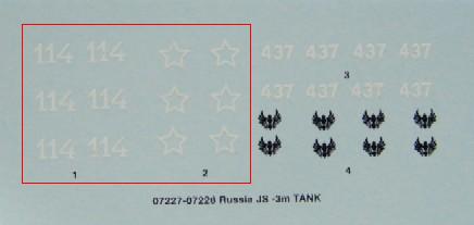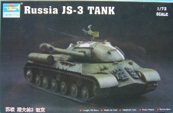 Although Trumpeters release times are not a voracious as Dragons, they are still releasing at a steady rate or what seem to be in batches, with the three Japanese tanks as one batch then the AS 90 and the Strv as another and now the JS-3 and the Sherman's, what will come next?? On to the kit, it is moulded in a light grey plastic, somewhat lighter than the Dragon colour. All parts are very finely moulded, there is nothing clunky about this kit. The hull comes in two parts, with the lower being very well detailed, the suspension arms are separate items allowing for some movement in the suspension.The upper hull has some rather large placement holes for the various parts that fit to the hull, from past experience I am not overly alarmed by this as most will be filled, the other thing I like is the fact that the parts can be attached from the inside, negating any mishaps with the glue on the outside. So how does the hull compare to the Roden Hull? Placed side by side there is not much difference between them, but closer inspection will reveal several bad points on the Trumpeter kit. The first is the angle of the nose, the angle of the Roden kit is a little more acute than the Trumpeter one, the Roden one is correct, this brings me on to the second failing, the Trumpeter kit is missing the prominent weld seams around the nose. The third thing is not really a fault the barrel clamp is moulded as part of the hull, removing it will be extremely difficult without obliterating the detail underneath. However it is not all doom and gloom, at least the Trumpeter kit has the stowage bins along the side of the hull. The kit has one large sprue which contains the turret and the hull fittings, the Auxiliary fuel cells are moulded as one piece with just one end to attach, how well does this work ?? we will see. The Turret is moulded in two halves, you may wonder as to why there are two sprockets one with teeth and one with half of them missing, I will come to that later. The DshK AAMG is one of the best that I have seen, I used to think that Rodens was the best until I saw this one, why is it that the best MG's are on the IS-3?? Here are the Trumpeter and Roden turrets side by side, the main problem with the trumpeter turret is it is missing the flat area at the rear of the turret. The DshK The wheels and tracks come on two separate sprues of which there are four in total (two wheel and two tracks) As has been discussed elsewhere, the wheels are not an exact representation but they are close and better than the Roden Wheels. The tracks are of the L&L variety very well detailed and nicely thin. One surprise to me was the inclusion in the kit of a set of ready assembled tracks wheels and suspension, These are nothing like the one piece tracks in the Italeri IS-2 or the Hat kits, these are beautifully detailed tracks just as good as the Link and length ones, in fact I would say better because they are a perfect fit around the sprocket and idler. On closer inspection you can see that you still have to add the wheel outers from the sprue so you don't exactly get a full second suspension which is a damned shame Trumpeter have also included pre-bent wire for the turret grab handles, this is a nice touch but how do they look ?? until assembled it is hard to tell The decal sheet seems to be a generic one covering the IS-3M as well, the instructions show markings for 2 vehicles, with the decals in the Red rectangle being used as one vehicle is devoid os marking except for a white recognition stripe. The kit scales out to 1/72nd according to the references I have. All in all it is a nice kit with a few faults the main one being the moulded in place barrel clamp, something that has spoilt a otherwise very nice kit. References