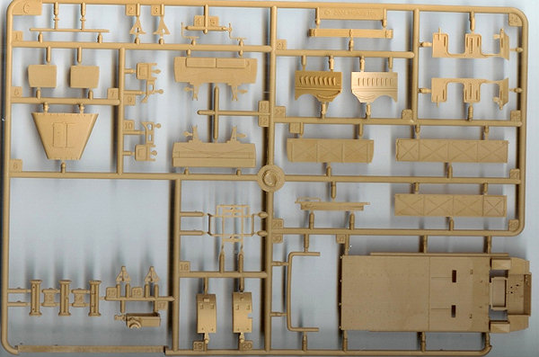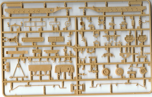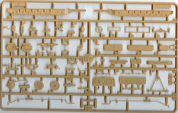 The other main difference is the first version only has the earlier and larger mudguards. The suspension is spread out over three different sprues with the main chassis frame on sprue A. The rear axial beams on sprue B & C, with the wheel swing arms on sprue B. On the newer versions all this is moulded as one piece. But the advantage of this earlier type is the chassis also has locator holes on the outer sides too, for independent wheel axles so you can articulate the suspension to look like the tracks are moving over uneven ground, but the arm movement is very limited so the height extension is quite small. Warning: Some earlier instructions may mislead the builder with the triangular part on the front axle, there are 2 pips & notches to line up by the front brakes. Lastly there is just one choice of track: As the 2-piece Link tracks are moulded in black plastic and all individual links (they do not have pre-mould lengths of track to help you), it is a very monotonous to build especially as once you have cleaned up & glued the links you have to start again with adding all the rubber pads to each link. The one saving grace is there is a plastic rail bracket/rig also supplied to help you line up your tracks before adding them to your wheels & sprockets. See the Later Version Famo for sprues of the upper half of the kit. (Both kits are the same). A good Reference book on the Famo is Nuts & Bolts Volume 12 (see review below). http://www.perthmilitarymodelling.com/reviews/books/nuts_bolts/n&bv12.htm For Diorama ideas Concord's German Half-Tracks 7054 http://www.concord-publications.com/7054/7054.htm German Armored units at Arnhem 7039 |