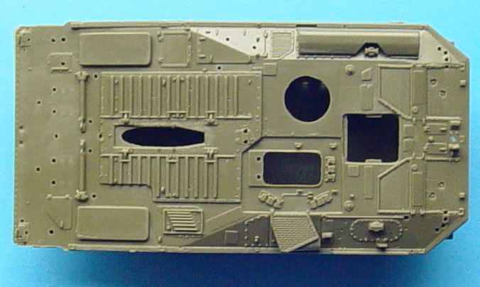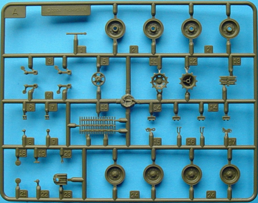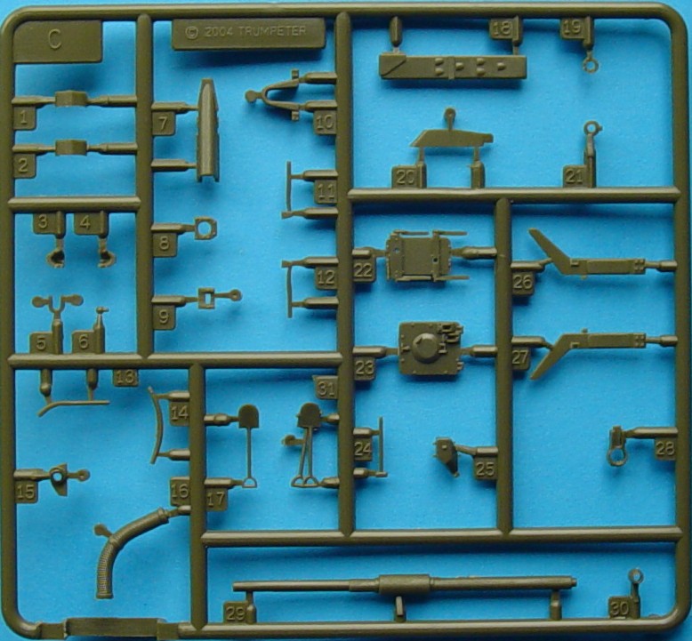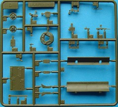 The first of Trumpeters stand alone Modern vehicles, again it is an unusual but very welcome from my point of view, choice. The hull is moulded in the usual trumpeter style of top and bottom, being fully detailed. However in difference to the JGSDF tanks, the suspension arms are moulded seperately, giving the builder the choice of how to position the wheels, through the full range of suspension movement on this unique vehicle, bearing in mind that elevation and depression of the main gun was achieved through suspension movement. Sprue A contains the road wheels and suspension arms for each side of the vehicle, there are two of these sprues in the kit. It also contains some of the many periscopes and the frontal Bar armour seen on many of these tanks.One thing to be wary of is that the suspension arms don't have any positive location, so care has to be taken when aligning them. Sprue B contains the parts for the wading equipment, the S-tank is capable of wading through the erection of a screen fitted around the hull. The sprue also contains the armoured side skirts and the rear and front stowage panniers.The front two used to house Machine guns, I am not sure if they still do or are now being used for storage. Sprue C contains various hull fittings and main gun, plus the optional exhaust. Sprue D contains the cupola and the forward dozer blade, used for self entrenching Trumpeter have continued the trend of using the same vinyl tracks as on the other modern MBT's, these again are highly detailed and fit well around the wheels. Decals are provided for one vehicle, which is obviously from Sweden. The kit scales out at 1/72nd scale according to my references. Again this is another very detailed and welcome release from Trumpeter, and one that I have been waiting for someone to release, but never thought anyone would. The kit has a lot of small parts which is why it is so detailed, not that I am complaining, but it does make this kit not one for the faint hearted. References Jane's Armour and Artillery 1990-91 11th Edition by Christopher F Foss Jane's Tanks and Combat Vehicles Recognition guide Second Edition by Christopher F Foss |
