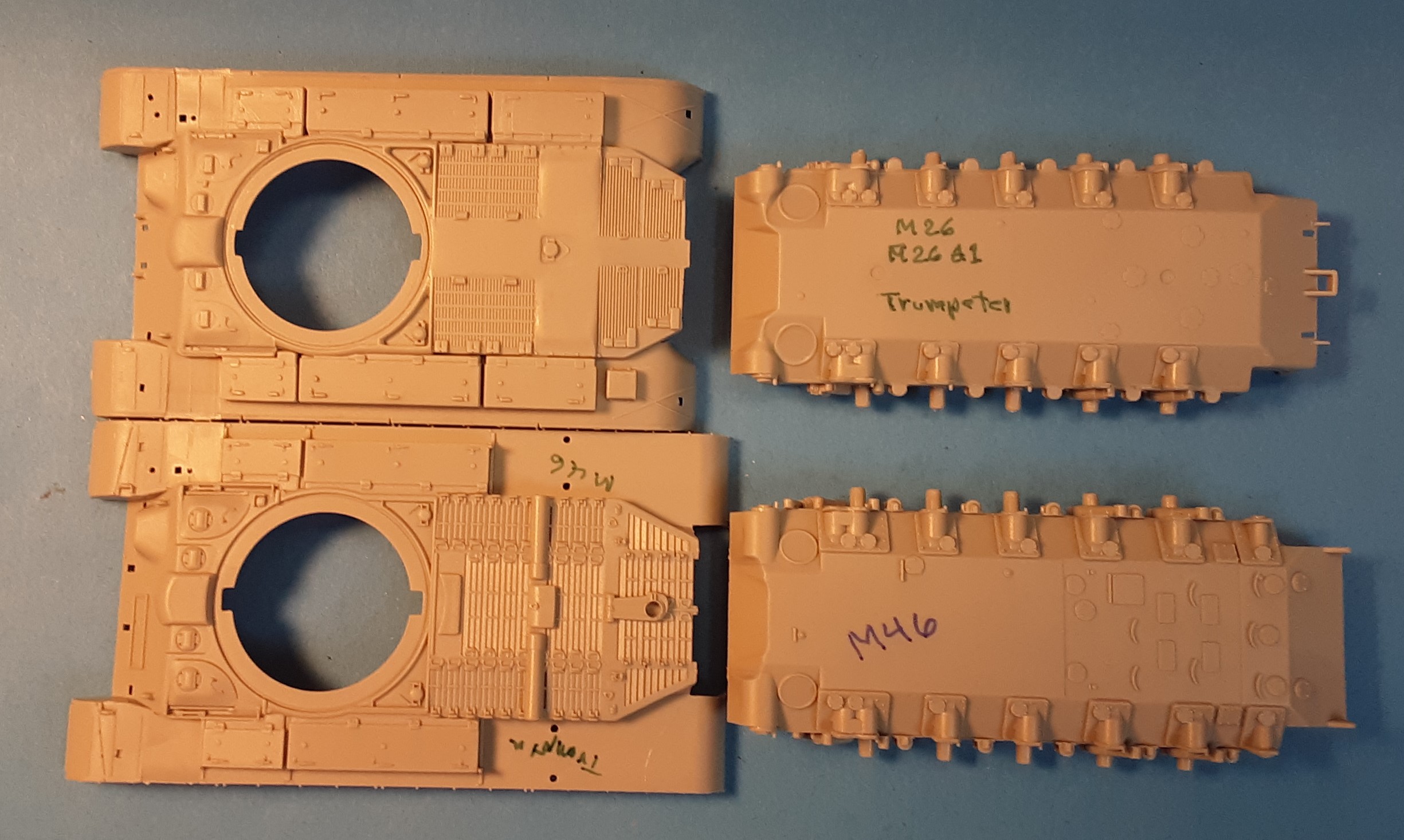 Little Bit Of History For The Modeler This in the box preview will cover Trumpeter’s smallscale M26, as well as their M26A1 and M46 kits which share many of the same kit parts. The M26A1 was an upgrade with the M3A1 gun. The M46 had a new more powerful engine. All three tanks went on to serve in Korea and Cold War Europe. The