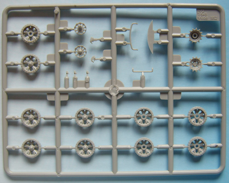 07281 T55A Kit No 07282 Both kits are essentially the same with just the turret sprue differing between them. Although these kits have already been released by both, ACE and PST, these are the first release by a main line manufacturer of these both historically and numerically important tanks. The T54 and the later T 55 have in one guise or another, been involved in many conflicts around the globe and there are many examples in museums around the world, the fact that so far all the producers of the kits are from countries who in one guise or another have either manufactured or used the T 54/55, you would have thought that maybe one of them could have got it right! So lets start by looking at the kits, both come set out on 4 sprues with the turret sprue differing between the kits, the hull bottom and top come as separate pieces, the hull tub comes with the suspension arms moulded in place and is very well done apart from the ejector pins hole on the underside of the suspension arms, these are really a minor problem as unless the vehicle is going to be displayed upside down, they are not going to be seen. The underside details differ slightly from the ACE kit but match the Tamiya kit, having never been underneath a T54/55 I can not say which is correct, but the details are in the correct position, only the recessed escape hatch should be flush with the bottom of the hull and not as it is depicted. The front has the correct cut away angles on the lower glacis, which also has no engineering attachment points for either the T-54 or the T-55, this is not incorrect, as I have seen plenty of pictures of both tanks like this, but I would say that it is more common to have them fitted than not, and although these are easy to replicate, given that they are a common feature, it would have been easier to include them on the kit or to do as Tamiya have done and supply the part separate, something that maybe they meant to but forgot? Moving to the rear plate, there are locating holes for the fuel drums, these are 4 largish square holes and are present on both kits, however only the T 55 kit provides the fuel drums, these are not present on the T 54 kit, meaning that the holes have to be filled, as the hull tub is marked inside as a T 54 model 1952 it seems odd that the drums are missing or that the holes werent flashed over, either way it is plausible for a T 54B to be fitted with the fuel drums. Moving to the upper hull, on both kits the inside is marked as a T 54 model 1952 and here lies the problem, more specifically in the engine deck, the kit features two rectangular access hatches immediately behind the turret, while this is correct for a T 54, it is incorrect for a T 55, where the right hand access hatch is a completely different shape, moving back the radiator openings lack the mesh screens seen on the real vehicles, the detail on the model is correct for what is underneath these screens, the radiator hatch itself has an odd kink on the rear edge, whereas it should be straight. Moving further back to the fan, we have a further oddity in that the protective grill is only shown on the left side and not on the right! Even if we presume that the cover has been lost for some reason, the armoured cover shown in place should have a small bulge in it to clear the fan itself. Moving to the front the glacis does have the correct bevelled edges, the drivers hatch is moulded shut and there is a noticeable absence of any electrical wiring for the lights. Also missing from the T 54 is the hull mounted MG, although in reality this was only a small hole to the right of the driver and difficult to replicate. The other oddity of this kit is the weld on the front of the glacis, with it being marked as a T 54 you would have thought that the weld line would have followed the T 54 but no the weld line follows that of a T 55 and runs straight across the lower edge whereas the T 54 should have a definite cut out for the interlocking plates of the lower and upper glacis plates. Apart from the glaring mistakes and omissions the hull is very nicely moulded with some nice details but missing any weld structure whatsoever. (Note, the T54 deck shown is the early layout for the radiator grills, later models switched to the T 55 style, however the engine access doors stayed the same) Next we move to the wheels, these come on two sprues both exactly the same, each contain 5 sets of road wheels, the idle and drive sprocket, plus tow hooks and lifting hooks for the turret as well as the hand rails and hull extensions for the turret. The sprocket and idler wheels are very nicely done, the road wheels would be the best if not for the fact that trumpeter had decided to show the mould lines for the rubber tyres, this would be heavy even in 1/35 scale but in 1/72 it is absolutely ridiculous and ruins a perfectly good wheel, of course it can all be removed, but it is a tedious job plus the fact that it needs to be done 20 times make the opportunity for making an error that much greater, given the fact that you want to preserve the delicate rims of the wheels. The plastic handholds for the turret are slightly oversized and could do with replacing. The next sprue contains the fuel tanks, exhaust, the various tool bins, oil tank, main gun, lights and lower turret. The fuel cells are nicely moulded and at least have a depiction of the locking mechanism for holding them in place, the tool bin has some nice detail to the top but is missing any of the characteristic side ribbing. The exhaust has the ribbed heat shield as part of the exhaust instead of being stood away from the exhaust, the main problem comes from the main gun and pig snout mantlet, whilst the main gun itself is nicely moulded and so is the mantlet, the whole assembly is missing the dust cover seen on every operational T 54/55, the only vehicles I have seen without it have either been burned out or in a museum, and I cant see many people wanting to depict it that way, the dus