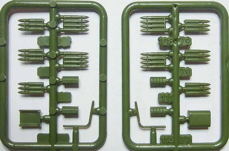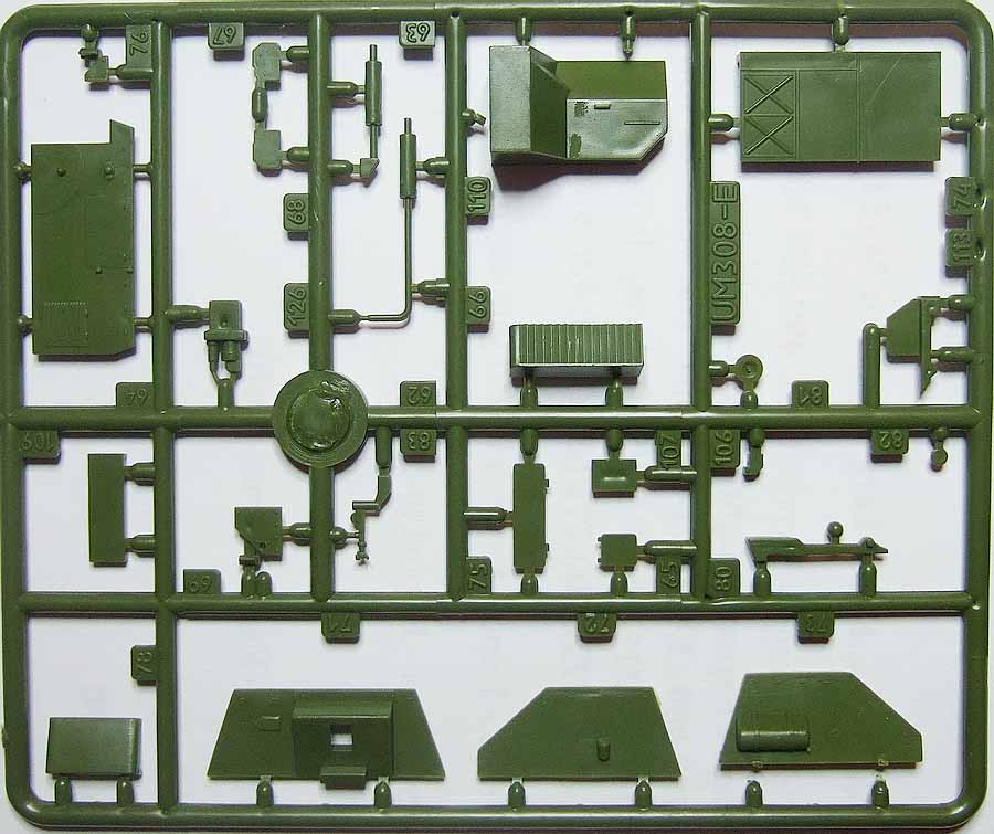 There are 8 sprues of typical green plastic. Four sprues with wheels,