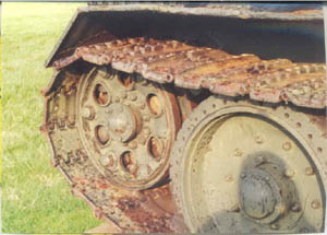 the roadwheels over rough ground. The rubber tired small idler wheel