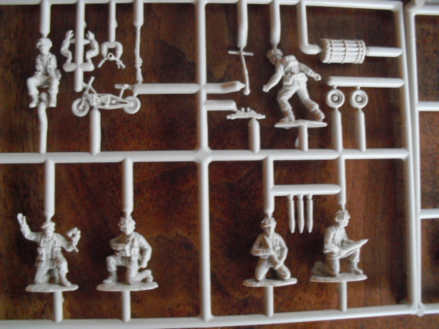 The title makes you expect a gun and men, but there's much more included! Let's make a stock of what's on the sprues: