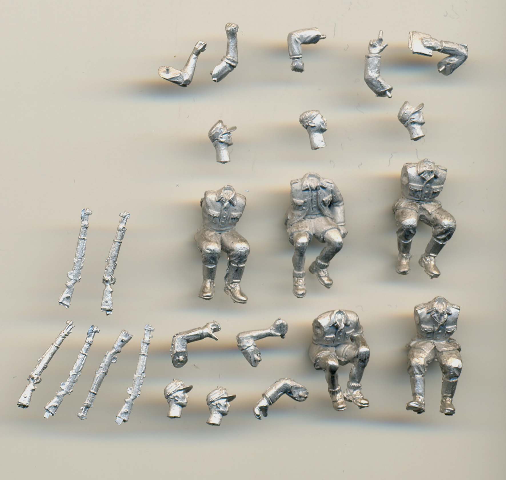 with separate heads: You also get six rifles, which will at least give you one spare. While labeled as an Sd.Kfz.9 crew, these figures can actually be used in any setting with a warmer climate, while some can even be used more widely. Only one figure has a flattened lower back, which means that (without some resculpting) it's the only one that actually needs to be placed in a seat or on a bench. The set comes packed in several plastic