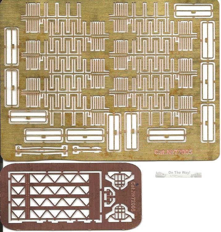 one thin and one thick photoetched sheet, and 2 crude sprues of dark brown plastic rods.