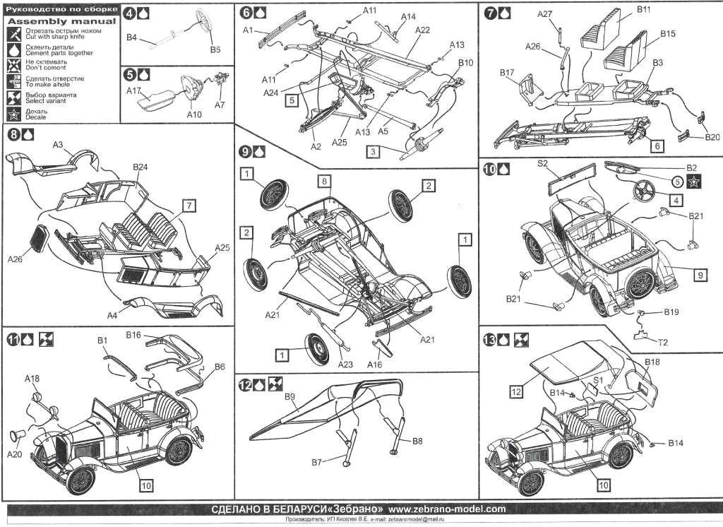 The instructions are conventional, in Russian & English, and appear generally comprehensive. Within them are painting instructions, somewhat unusually,