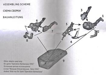45mm gun I reviewed. The boxtop says that this set is meant for 1939-1942. With the figures lying prone and the most distinguishable features of the different uniforms limited to the chest area (see article here) these figures can easily be used for a couple of years later in the war. Unfortunately, some of the typical equipment for an MG gunner (special pouch, pistol, ...) is not worn by the figures, although one might assume this detail is hidden under the figures. Review sample purchased by the author.