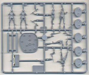 conditions. Obviously, these sets are aimed at the wargaming community (with a stats card - not shown-, flag and base) and while this might drive up the cost due to extra parts not needed for static modeling, it also reduces the cost due to a larger sales potential. Besides, I actually like the bases as they are very practical for handling the figures during painting, while the flag is a good source for thick plastic when scratchbuilding.