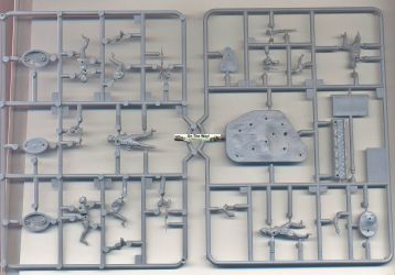 German infantry sets have been produced by the thousands by uncountable manufacturers but sets in hard plastic depicting early Waffen-SS troops are somewhat rarer. What is more common, though, is the use of a euphemism to describe the Waffen-SS, here called "elite troop", which they were, in a morbid way. In this box you get two sprues carrying 5 figures, in 4 different poses. The sprues also contain a base to support all five figures and five individual bases (always handy when painting), a wargaming flag and an unidentified "ridge". For